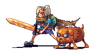 Paglalarawan ng Content: a pixel art drawing of finn and jake from adventure time