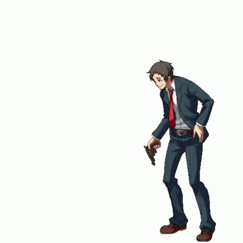 Paglalarawan ng Content: a pixel art of a man in a suit and tie holding a gun