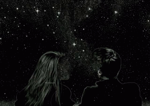 Paglalarawan ng Content: a drawing of a man and a woman looking up at the stars