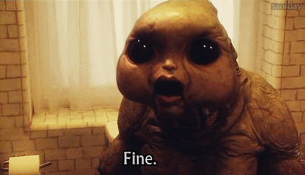 Paglalarawan ng Content: a monster is sitting on a toilet next to a window and saying `` fine '' .