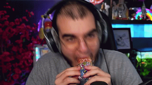Paglalarawan ng Content: a man wearing headphones is eating a candy bar