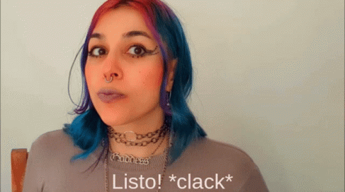 Paglalarawan ng Content: a woman with blue and red hair is wearing a choker and a necklace that says goddess
