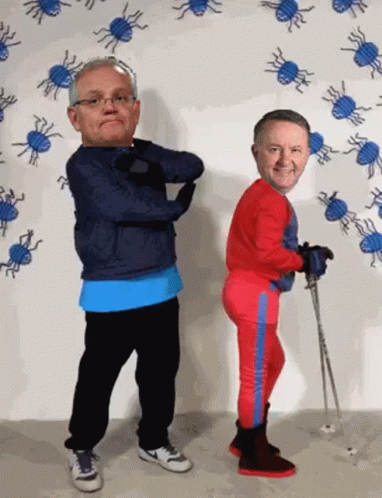 Paglalarawan ng Content: two men are standing next to each other in front of a wall with blue ants on it