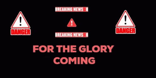 Paglalarawan ng Content: a black background with red warning signs and the words for the glory coming