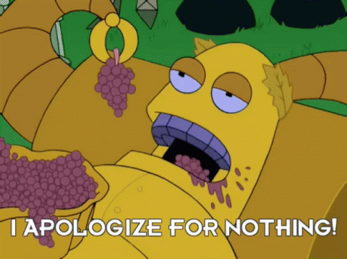 Paglalarawan ng Content: a cartoon character with grapes in his mouth and the words i apologize for nothing