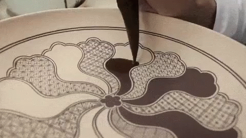 Paglalarawan ng Content: a person is painting a flower on a plate .