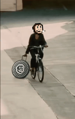 Paglalarawan ng Content: a pixel art of a person riding a bike with a manhole cover in front of them