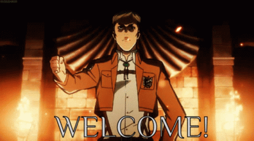 Paglalarawan ng Content: a man in an orange jacket stands in front of a fireplace with the words welcome on the bottom