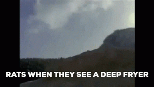 Paglalarawan ng Content: a picture of a mountain with the words `` rats when they see a deep fryer '' above it .