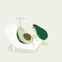 Paglalarawan ng Content: an avocado is laying in a hospital bed with an iv in it