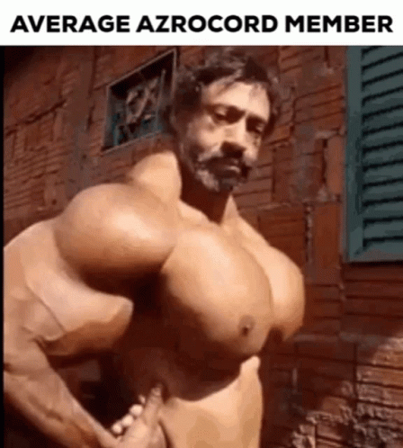Paglalarawan ng Content: a shirtless man with very large muscles is standing in front of a brick building .
