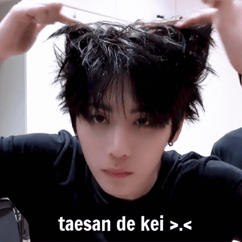 Paglalarawan ng Content: a person with cat ears on their head with taesan de kei written below