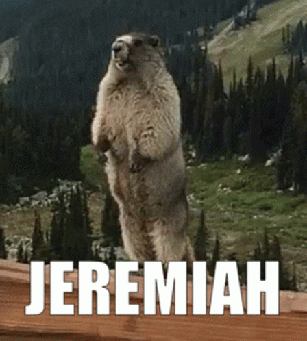 Paglalarawan ng Content: a picture of a groundhog standing on its hind legs with the name jeremiah written above it
