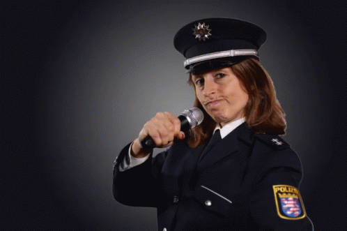 Paglalarawan ng Content: a woman in a police uniform has a badge on her arm that says polizei