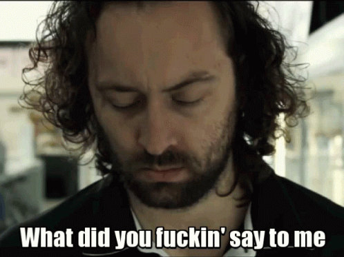 Paglalarawan ng Content: a man with curly hair and a beard says " what did you fuckin ' say to me "