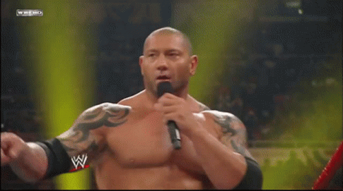 Paglalarawan ng Content: a man in a wrestling ring holds a microphone and points at something