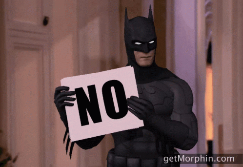 Paglalarawan ng Content: a batman holding a sign that says " no "