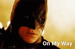 Paglalarawan ng Content: a close up of a person wearing a batman mask with the words on my way below him .