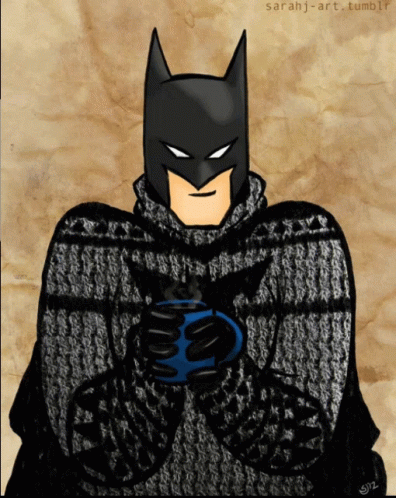 Paglalarawan ng Content: a drawing of a batman wearing a sweater and scarf