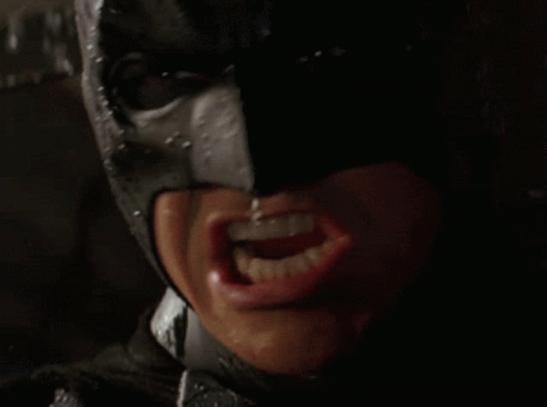 Paglalarawan ng Content: a close up of a person wearing a batman mask with his mouth open