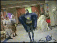Paglalarawan ng Content: a man in a batman costume is standing in a room
