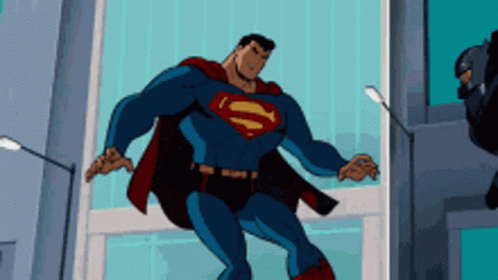 Paglalarawan ng Content: a cartoon of superman jumping in the air with the letter s on his chest