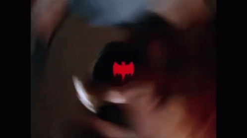 Paglalarawan ng Content: a close up of a person 's face with a red bat logo in the foreground .