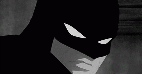 Paglalarawan ng Content: a black and white silhouette of batman with a serious look on his face in a black and white photo .