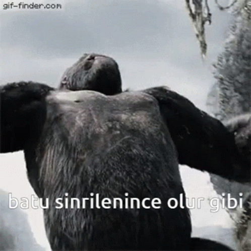 Paglalarawan ng Content: a gif of a gorilla with the words " batu sinrilenince olur gibi " below it