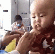 Paglalarawan ng Content: a baby is being held in someone 's arms and being touched by a person .