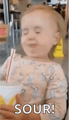 Paglalarawan ng Content: a baby is sitting at a table with a straw in his mouth and says sour .