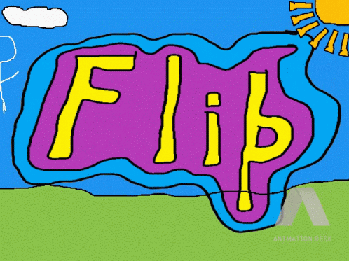 Paglalarawan ng Content: a colorful drawing of the word flip on a blue sky