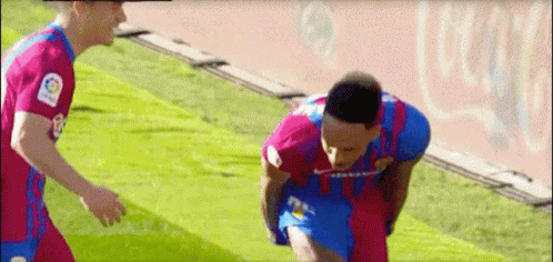 Paglalarawan ng Content: two men are playing soccer on a field and one of them is kneeling on the ground .