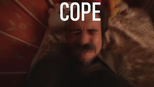Paglalarawan ng Content: a man laying on a bed with cope written on the bottom