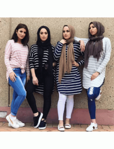Paglalarawan ng Content: four women are posing for a picture against a concrete wall