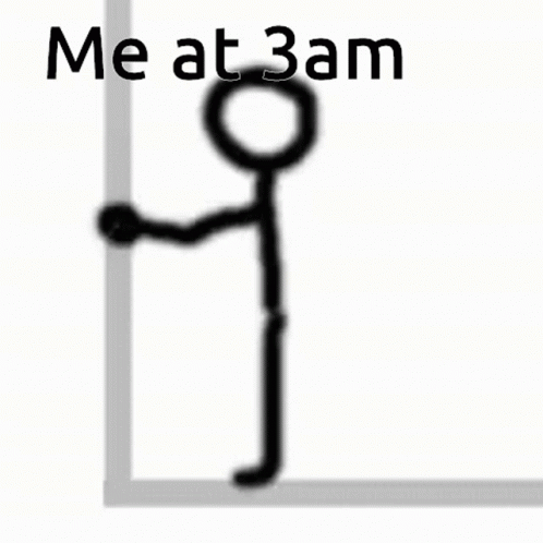 Paglalarawan ng Content: a stick figure is standing next to a wall with the words `` me at 3am '' written above it .