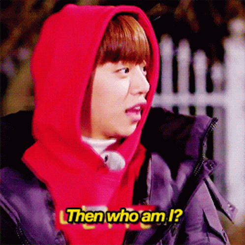 Paglalarawan ng Content: a person wearing a red hoodie says then who am i?