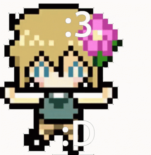 Paglalarawan ng Content: a pixel art of a girl with a flower in her hair and the number 3
