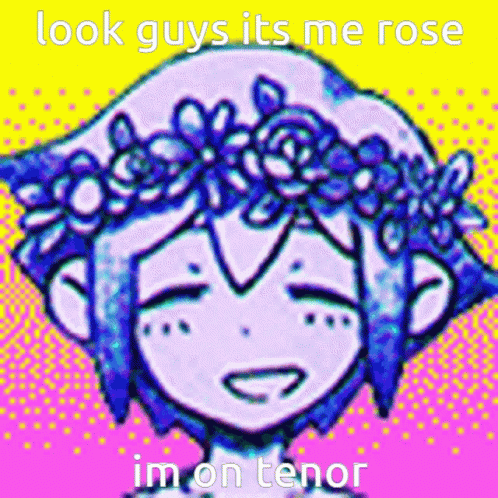 Paglalarawan ng Content: a drawing of a girl with a flower crown on her head with the words look guys its me rose im on tenor