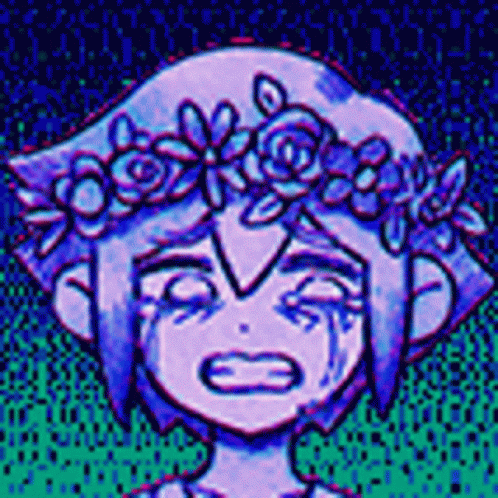Paglalarawan ng Content: a cartoon character with a flower crown on her head is crying .