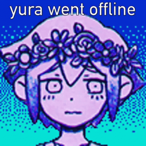 Paglalarawan ng Content: a pixel art of a girl with a flower crown on her head and the words yura went offline