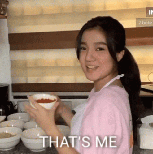 Paglalarawan ng Content: a woman is holding a bowl of food and says that 's me .