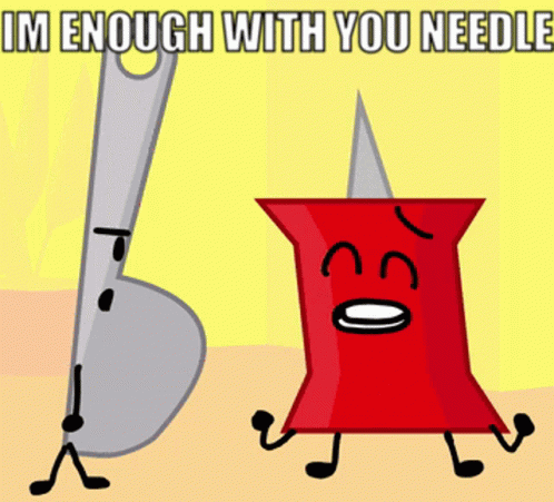 Paglalarawan ng Content: a cartoon drawing of a needle and a red pin with the words im enough with you needle above them