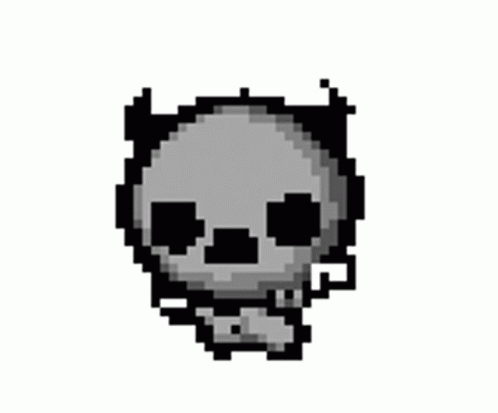Paglalarawan ng Content: a black and white pixel art of a skull with horns and a tail .