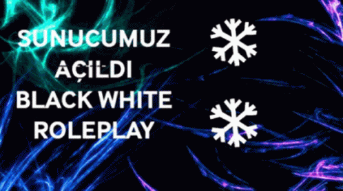 Paglalarawan ng Content: a black white and purple background with snowflakes and the words " sunucumuz açildi black white roleplay "