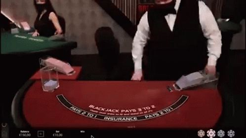 Paglalarawan ng Content: a man in a tuxedo is playing blackjack in a casino .