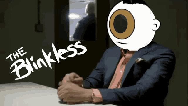 Paglalarawan ng Content: a man in a suit sits at a table with the blinkless written on the bottom