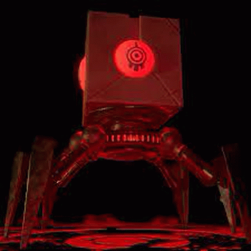 Paglalarawan ng Content: a 3d model of a robot with a red light coming out of it .