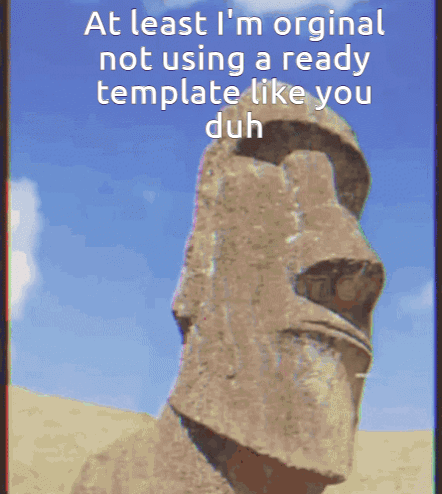 Paglalarawan ng Content: a picture of a statue with the words at least i 'm original not using a ready template like you duh on it