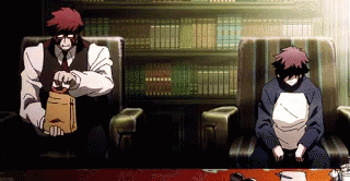 Paglalarawan ng Content: two anime characters are sitting in chairs in front of a table .